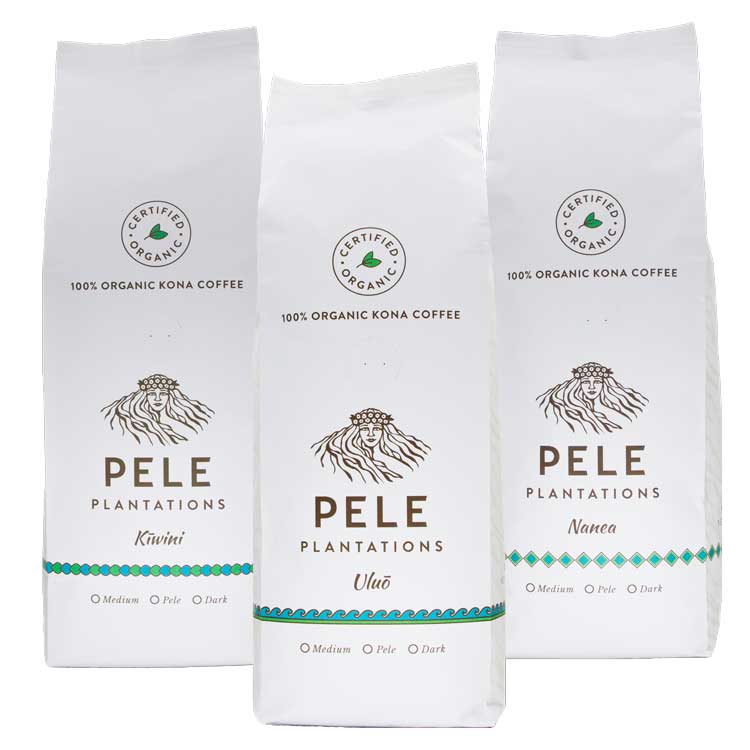 Your coffee selection will include three of the following organic single-estate coffees. Each comes from a small family farm in Kona, Hawai‘i, and is certified organic by ICS.